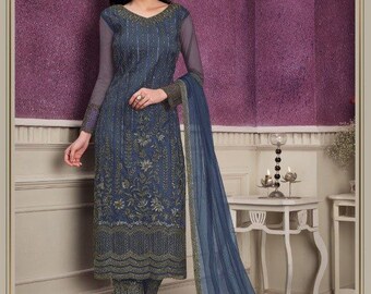 Beige And Navy Blue Lehenga Choli Wedding Special Sequence Etsy