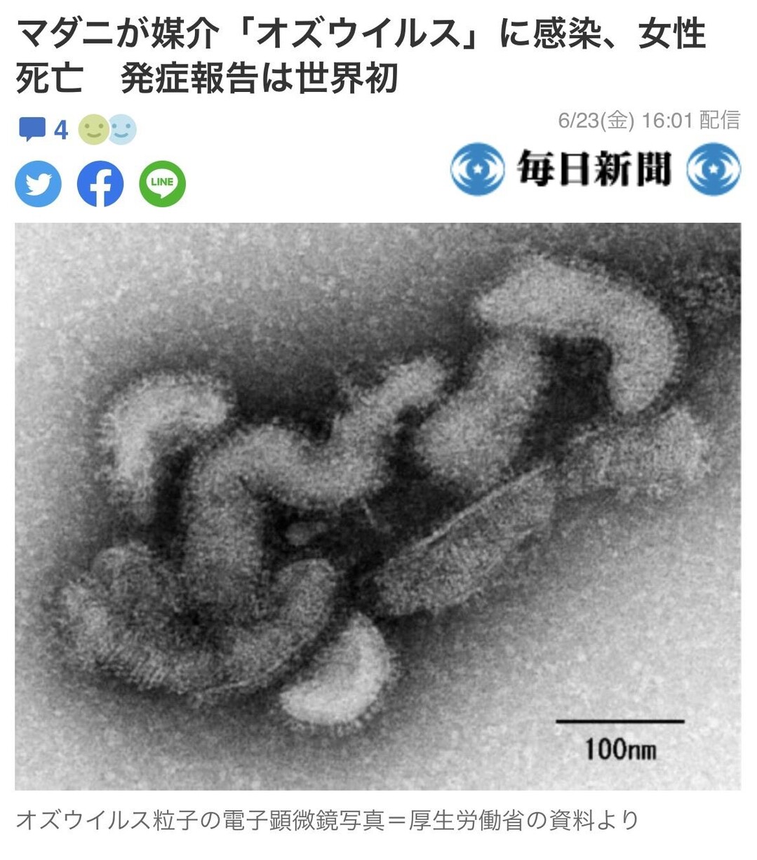 世界初マダニ媒介の オズウイルス で死亡例